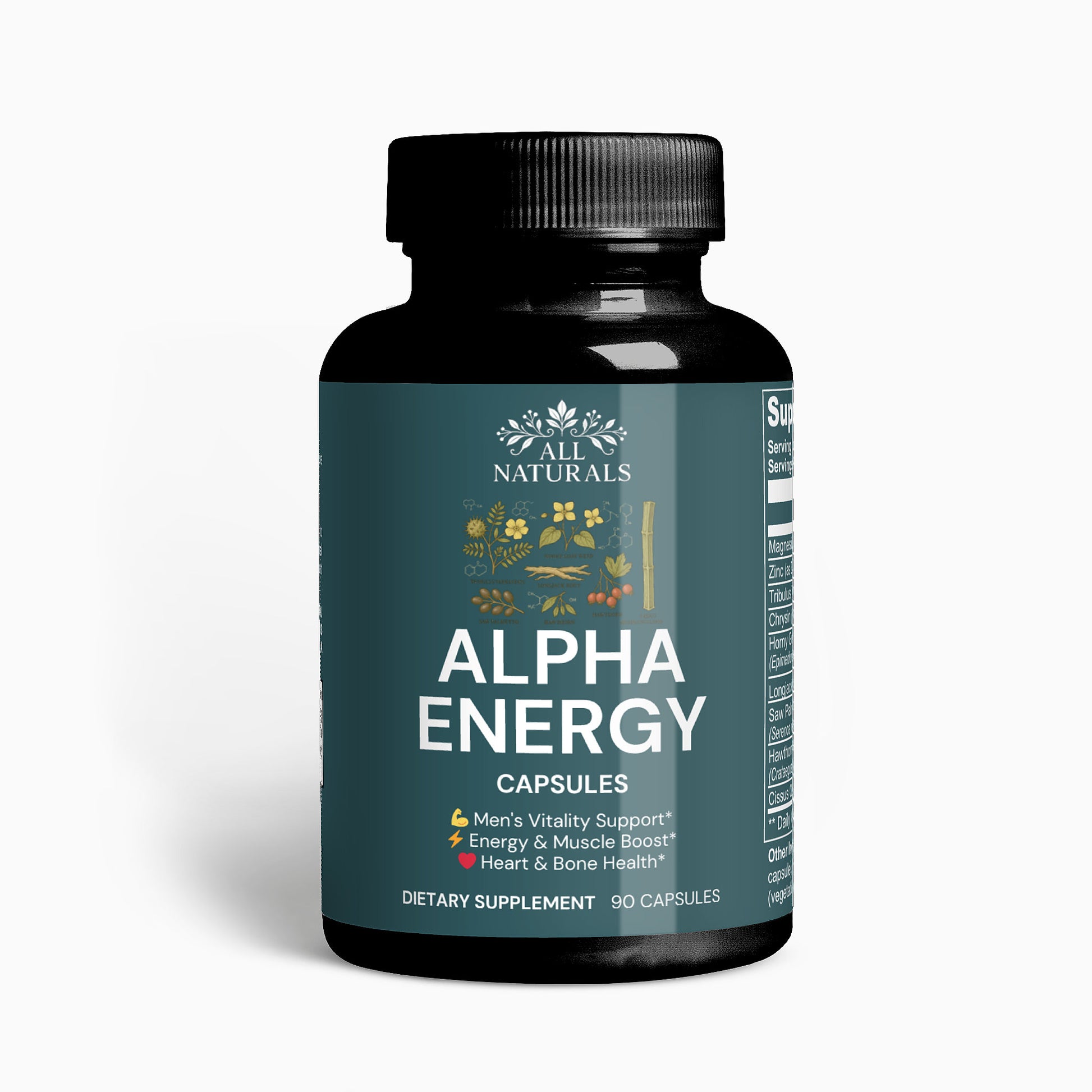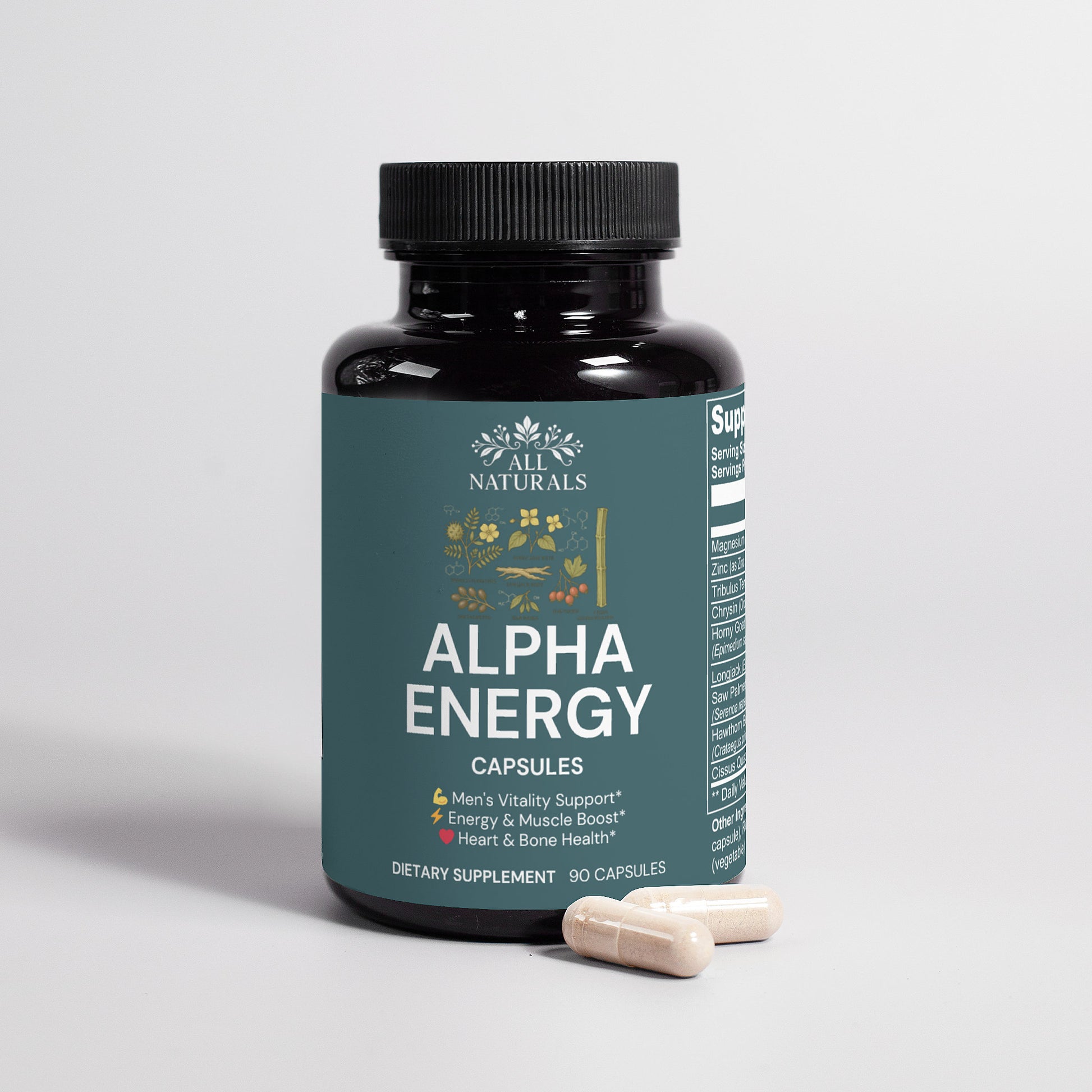 Support Men's Vitality and Wellness: Our carefully crafted dietary supplement is designed to promote men's health and well-being without containing testosterone. Formulated with a blend of key nutrients including magnesium, zinc, tribulus terrestris, chysin, horny goat weed, longjack, saw palmetto berries, hawthorn berries, and cissus quadrangularis, our product supports various aspects of men's health. *